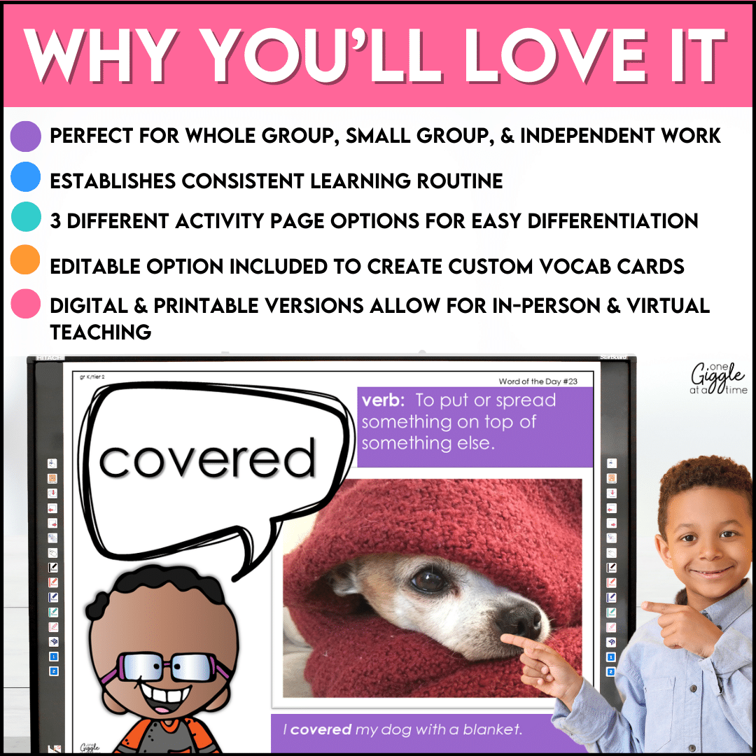 ⭐Perfect for vocabulary word of the day, word of the week, or vocabulary intervention lessons, this yearlong set supports vocabulary building, comprehension, and language fluency for diverse learners.