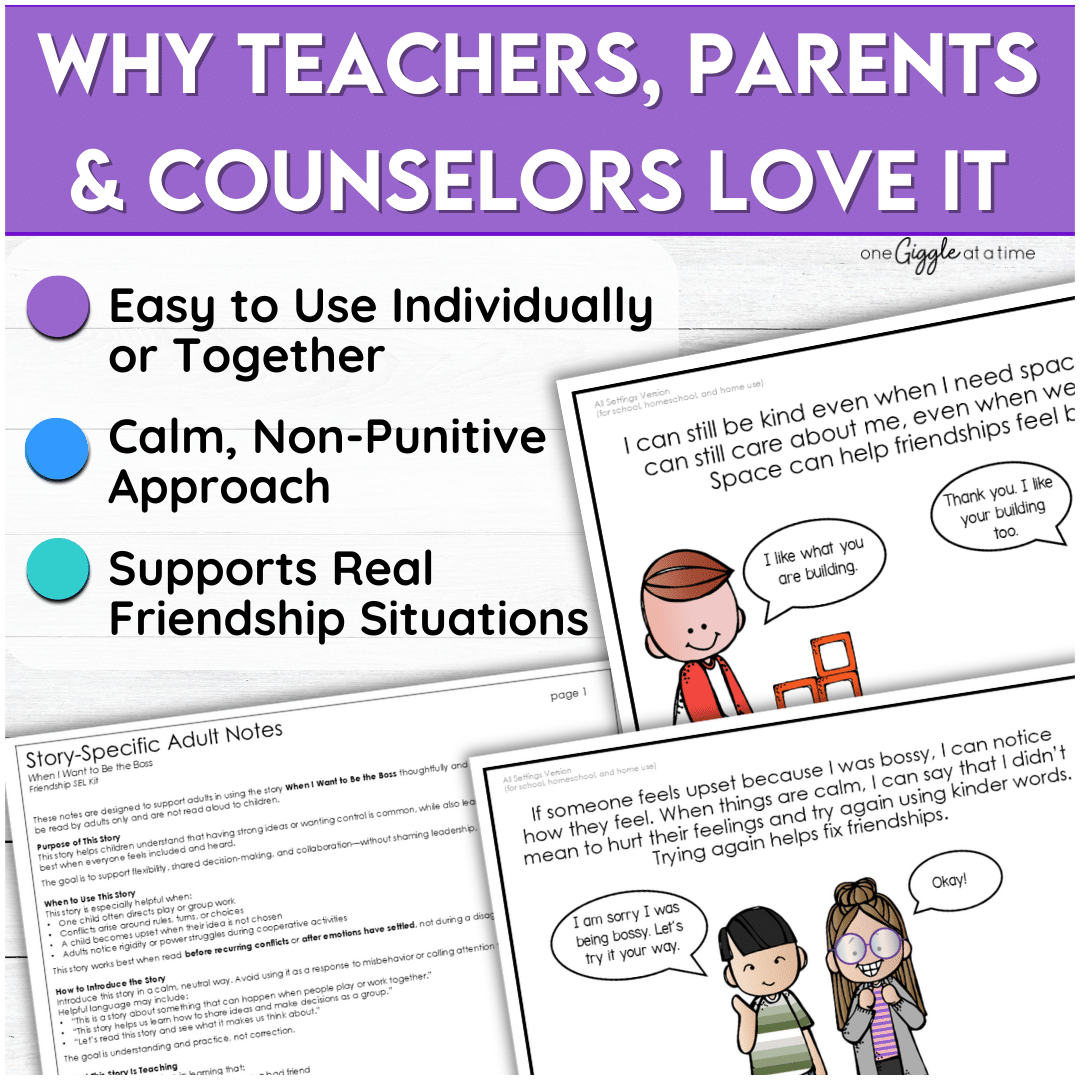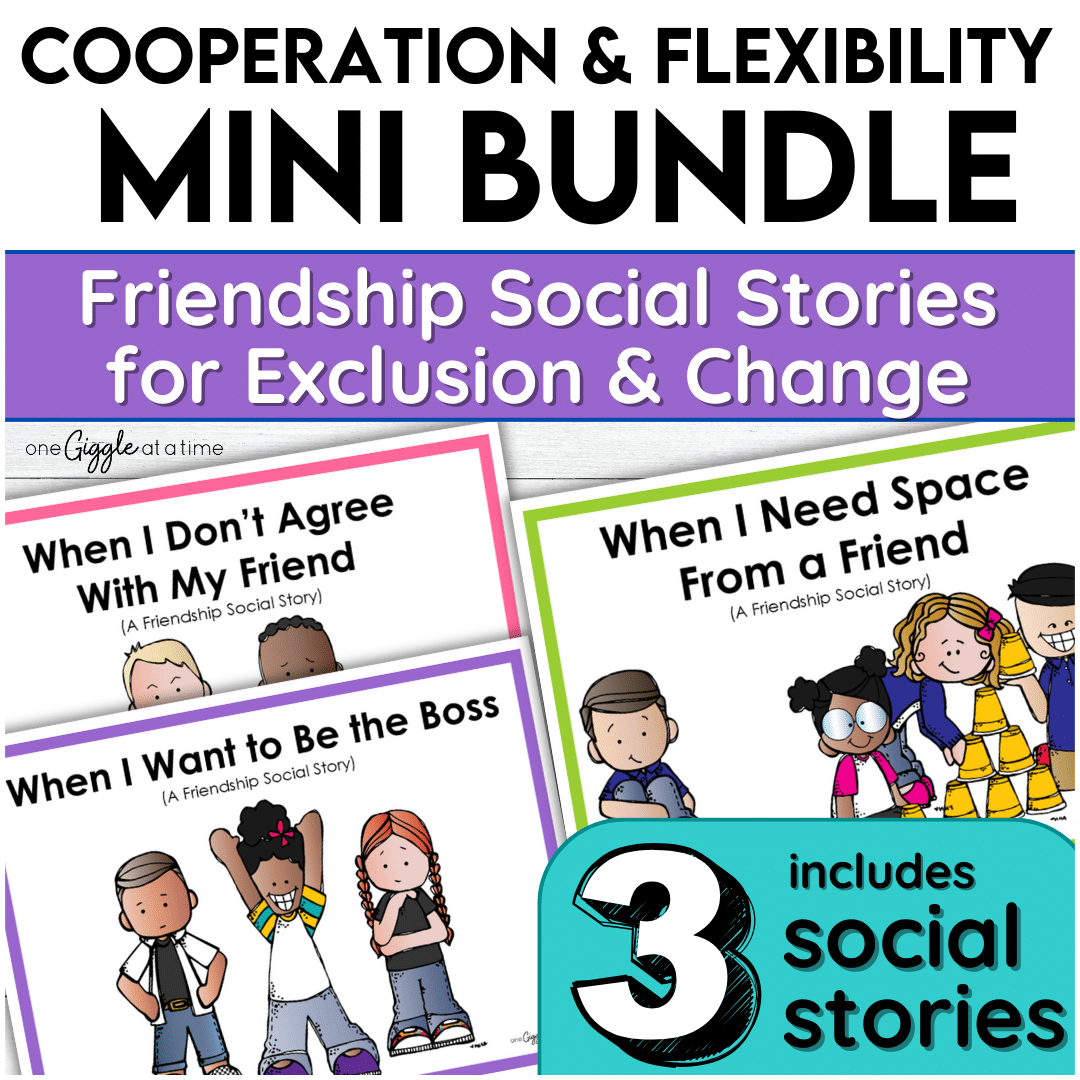 Cooperation & Flexibility Mini Bundleย is aย collection of friendship-focused social storiesย designed to help elementary students navigate disagreements, shared decision-making, and personal boundaries during play and group activities.