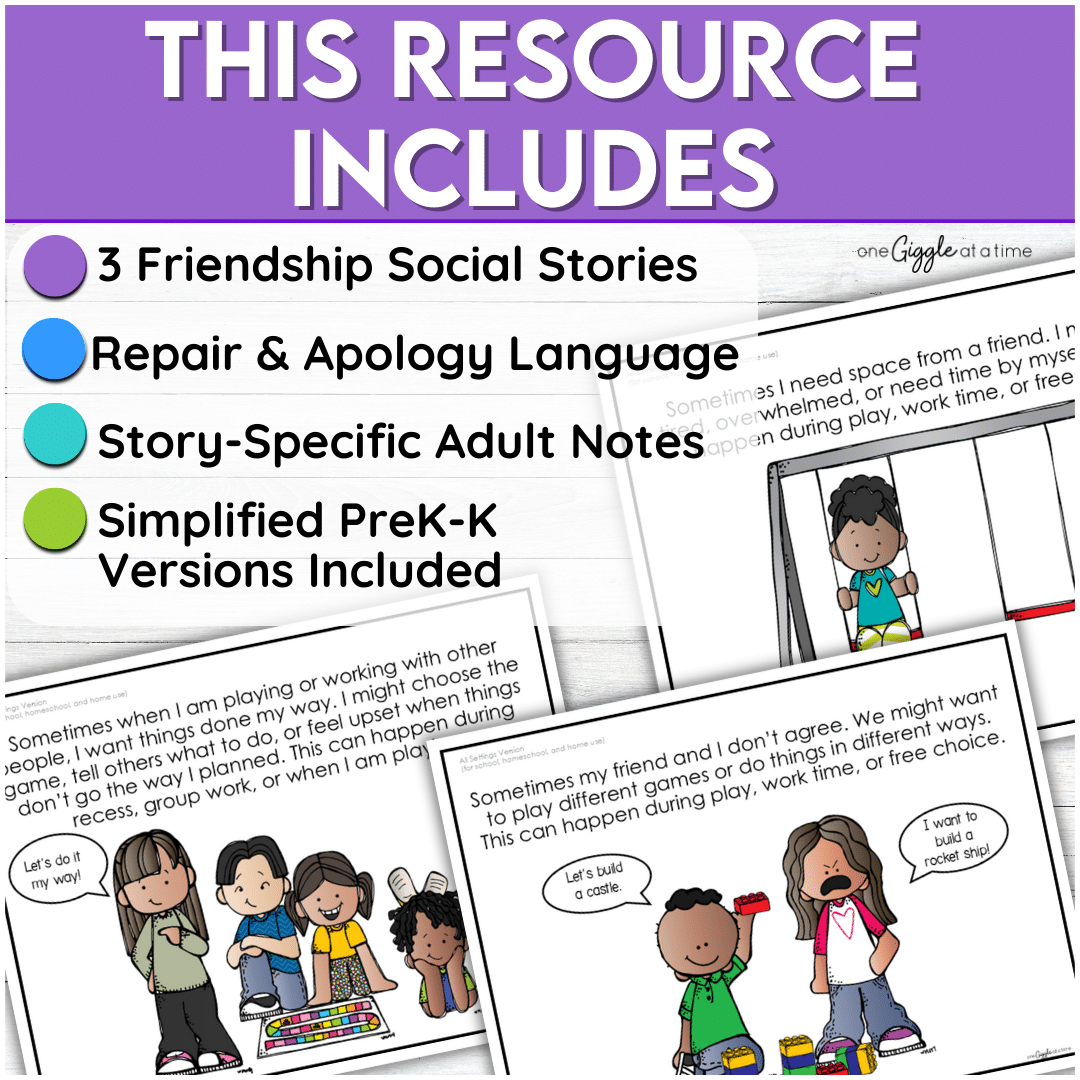 These friendship social stories support children as they learn that friendships work best when ideas are shared, differences are respected, and flexibility is practiced.