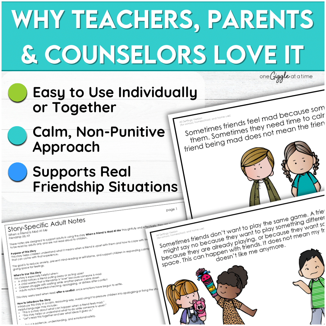 This mini bundle is part of a largerย Friendship SEL collectionย that includes additional social stories, a feelings and calm-down toolkit, and educator documentation support.